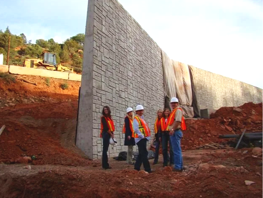 Overview: Construction of over 60,000 square feet of cast-in-place retaining walls on road widening project through Sedona, AZ. Special project requirements included limited access and staging, radius wall forming systems, heightened environmental concerns, and maintaining two-way vehicular traffic at all times.