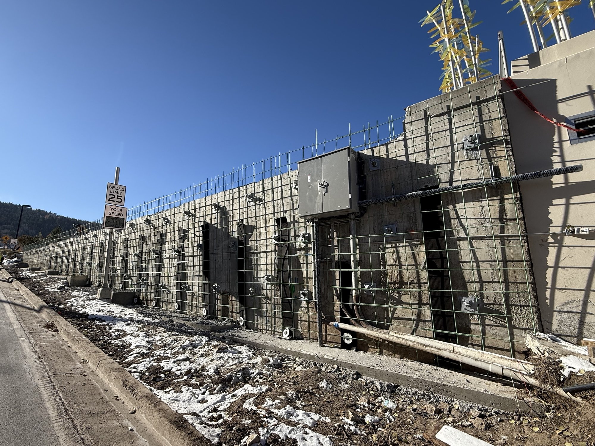 Overview: Located just off historic Main St. in Park City, the China Bridge parking structure had a failing retaining wall that needed emergency repairs so the structure could be safely used. We partnered with Ralph L Wadsworth Construction to assist Park City in the stabilization of an existing, failing retaining wall on Marsac Avenue. Construction included soil nails to stabilize existing wall and pouring of a new concrete wall on the face of the existing wall.