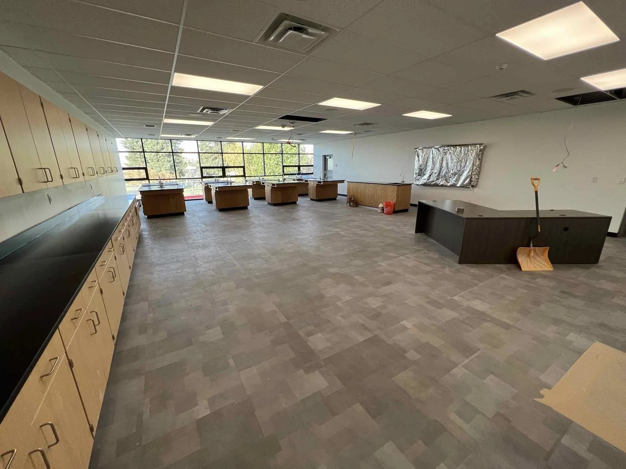 Demolition and remodel of three science lab rooms for Carbon High School. Scopes varied from concrete demo, millwork demo and re-install, new acoustic ceilings, new chemistry tables and sinks with new plumbing, metal lockers.